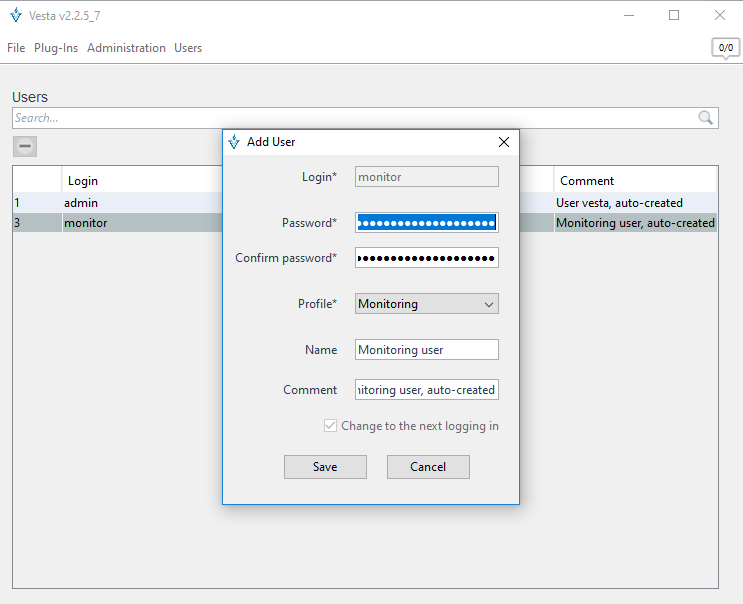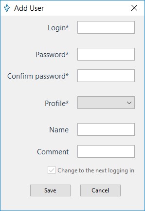 - Change to the next logging in: Indicará cambiar el password en el siguiente acceso a la aplicación (por seguridad es obligatorio y no editable)