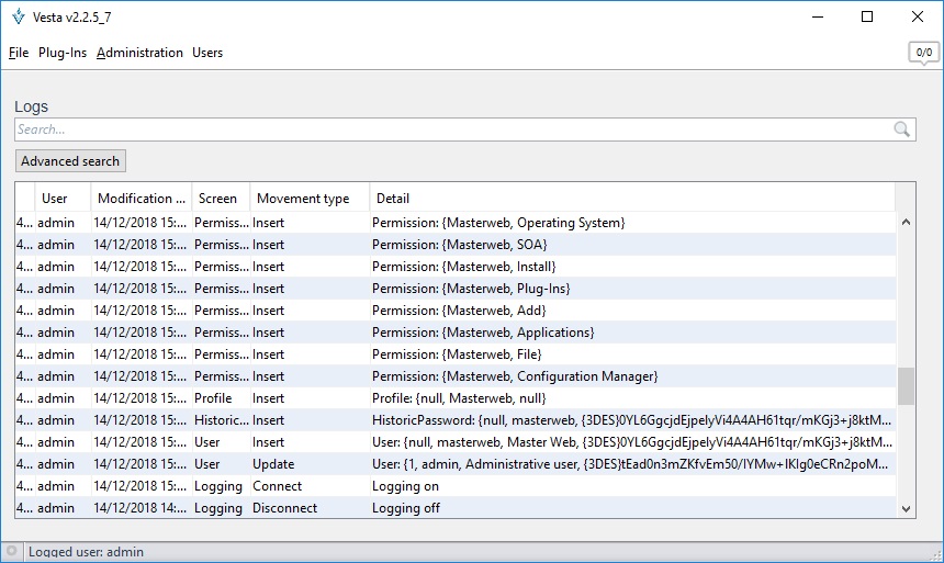 Permite consultar los movimientos realizados para tener un registro controlado de los accesos y manipulación de la aplicación.