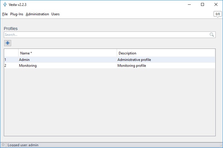 En la ventana se muestran los diferentes perfiles definidos dentro de la aplicación. Se pueden generar tantos perfiles como combinación de permisos sean necesarios.