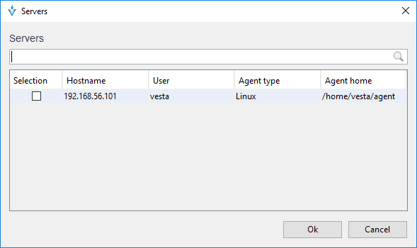 Dentro de la sección Servers por medio de el botón Search permite elegir el servidor al que se accederá. Posteriormente se mostrará la ventana con los servidores que fueron configurados en la sección Servers del menú File en Physical Architecture: