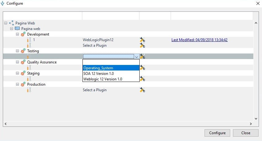 Una vez que se tiene elegida la aplicación y el ambiente con el plugin OS, se procede a acceder a la ventana de configuración.