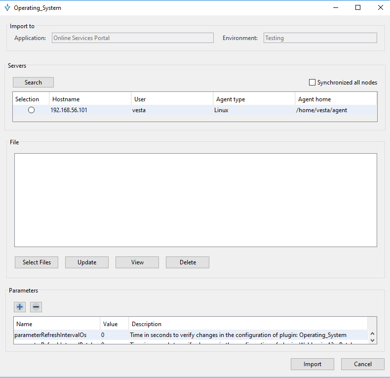 En la siguiente pantalla se deberá seleccionar la “Aplicación y Ambiente” al cual estará asociado el Plug-in “Operating System”. Es importante conocer que una misma Aplicación” y Ambiente” pueden estar asociados a múltiples plug-ins.