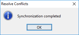 Una vez que termina el proceso de sincronización muestra una ventana que muestra la conexión al servidor y . En la ventana se muestran las propiedades de los cambios en los archivos y tiene la opción para activar la casilla y aceptar los cambios y otra para descartar los cambios.