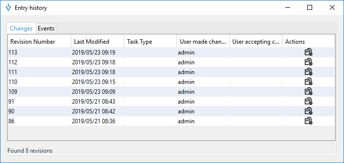 Muestra el historial de todos los cambios realizados sobre la entrada del archivo de configuración.
