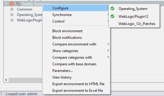 Para obtener las entradas de configuración relacionadas a parches de OPatch en un ambiente hay que seleccionar la opción Configure del menú Plug-ins
