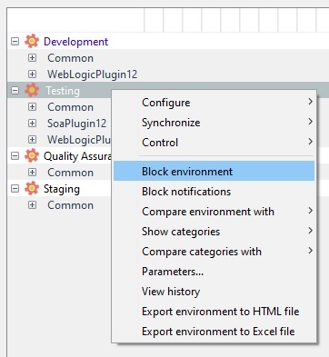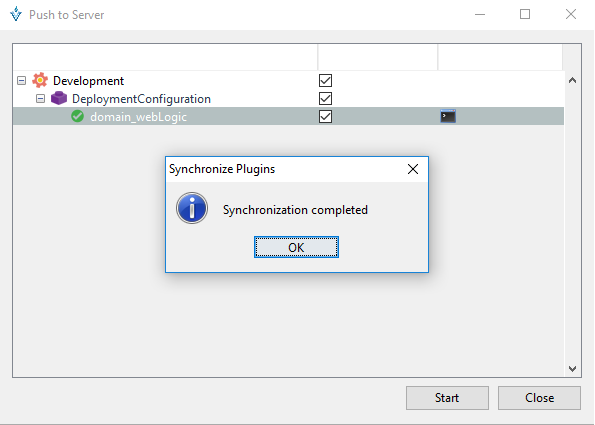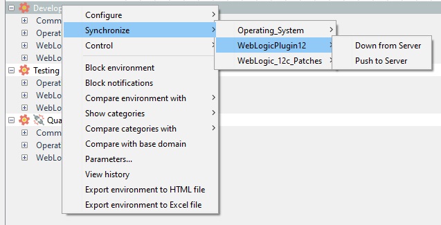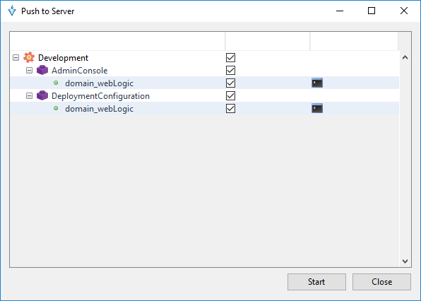Esta opción permite enviar la entrada de configuración seleccionada hacia el servidor de dominio “WebLogic” destino.