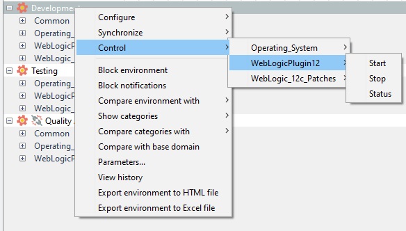 La opción Control se encuentra disponible exclusivamente con elementos de configuración de entradas del tipo Servers del plugin Weblogic.
