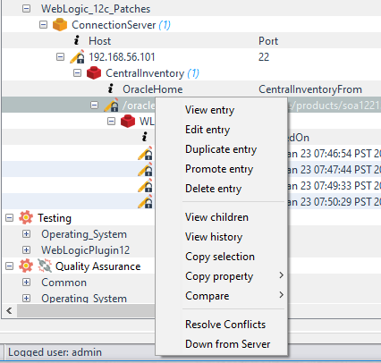 Ademas de las acciones básicas sobre las entradas, se dispone de acciones adicionales disponibles para las entradas del plugin weblogic: