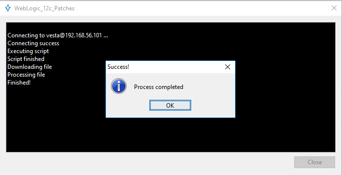 Cuando termina la conexión al servidor remoto muestra el proceso terminado y manda un mensaje de que esta completo.