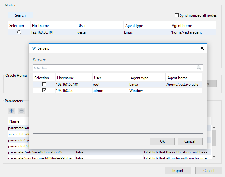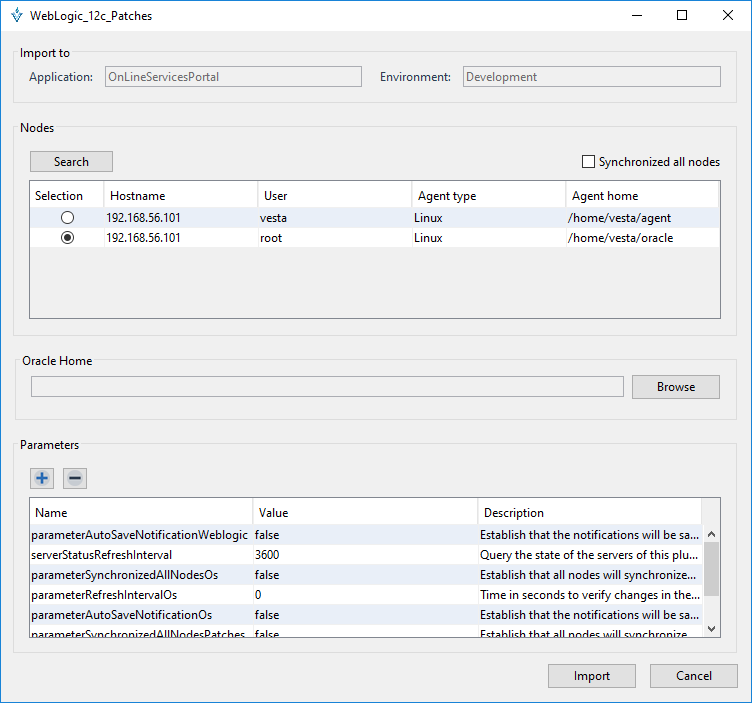 Import Este botón realiza la importación de las configuraciones seleccionadas desde WebLogic hacia Vesta.