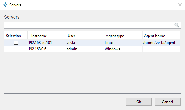 En la sección Physical server muestra la lista de los servidores que se encuentran agregados en la aplicación Vesta, si el servidor a utilizar no se encuentra en la lista al dar clic al botón Search abre una ventana donde permite elegir el servidor de la lista que se muestra: